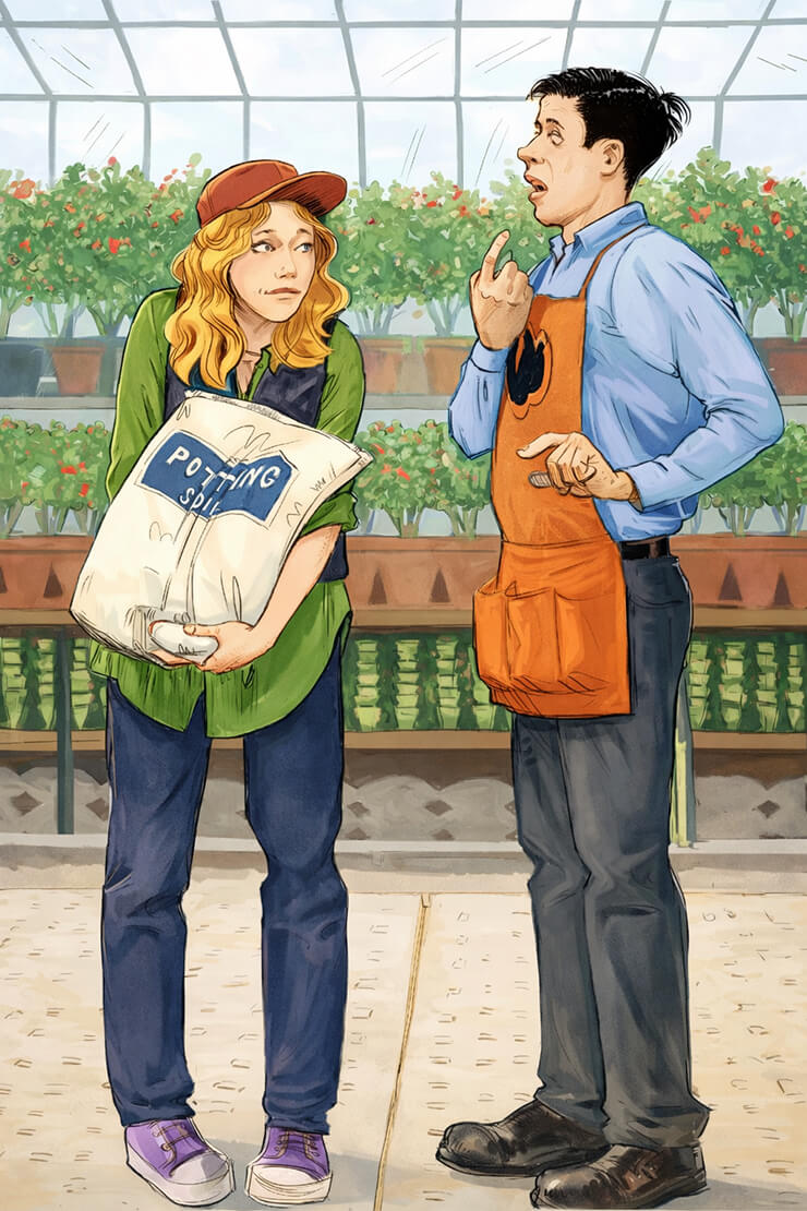 I’m looking for a Boyfriend Plant,” I say to the tall, handsome nursery worker who asks if he can help me. I’d been checking him out for about a month now—no wedding ring in sight—and finally got up the nerve to make an attempt at flirting. “I think they’re usually about a foot taller than me.” I smile up at him, batting my eyelashes. He looks at me blankly. “They can be somewhat elusive,” I continue, “but I hear they put down roots once they feel nurtured and appreciated.”