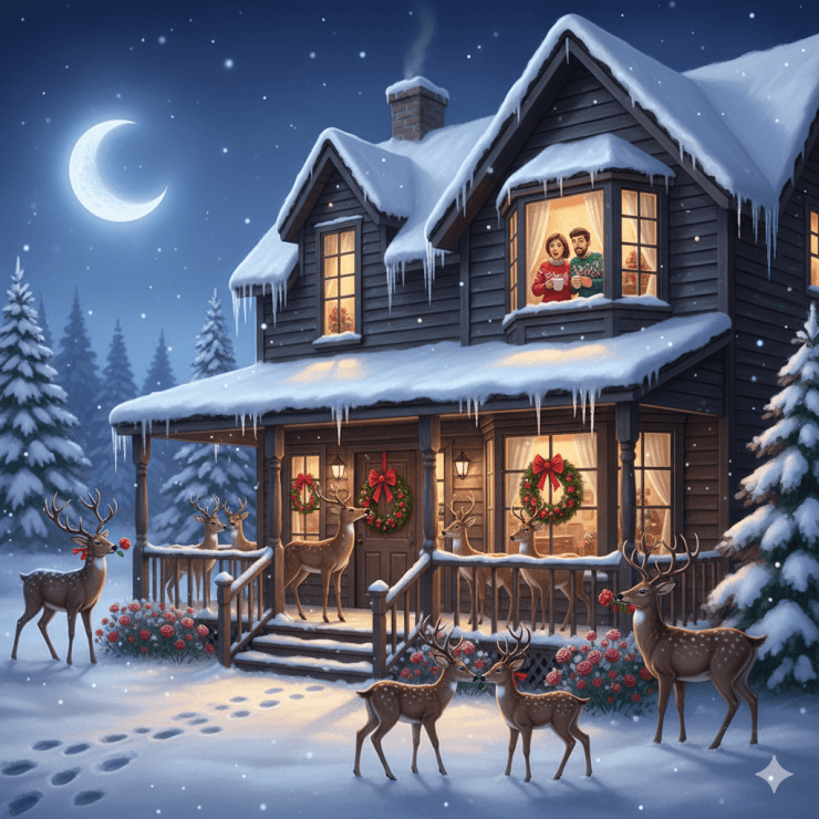I wanted to dismiss this wild theory, but sure enough, there were hoof prints all over the porch. They had sneaked up like Christmas ninjas, devoured my gingerbread men, and vanished without a trace—except for the well-polished nubs and their hoof graffiti.