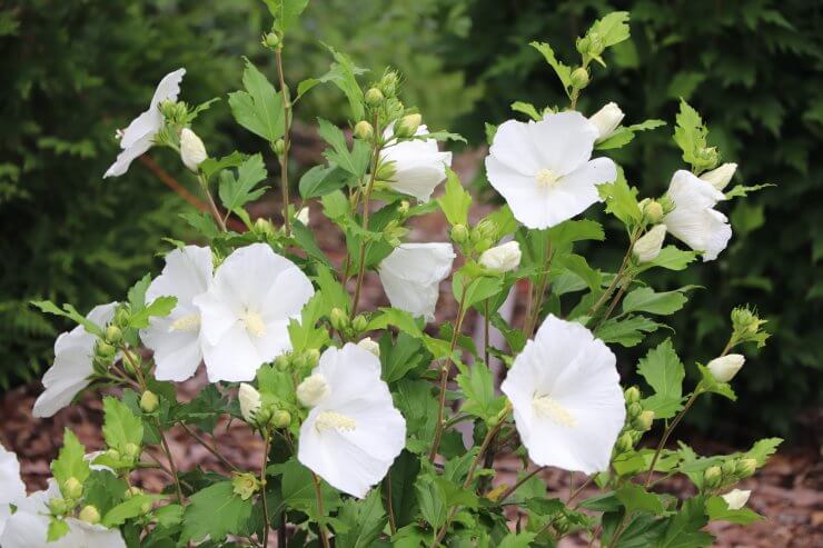 If you’re looking for a shrub that delivers tropical-looking flowers in late summer, rose of Sharon is hard to beat. Paraplu Pure White stands out with elegant, pristine white blooms that feel especially on trend as clean, sophisticated whites continue to dominate garden design. The flowers echo the calm, refined feel of the recent Pantone® Color of the Year palette, making them easy to pair with nearly any garden color scheme. Its upright, graceful habit fits beautifully in borders or as a flowering hedge, where it blooms when many other shrubs have finished their show.